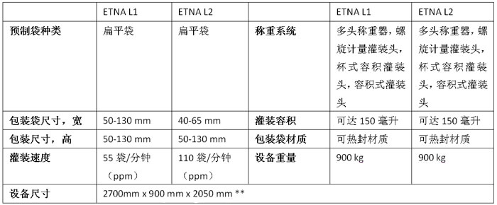 Etna L 是水平式制袋、灌装、封口3合1灌装机(HFFS),尺寸小,精准度高,操作简单,易于维护。高质量3边封-4边封平袋的理想之选。